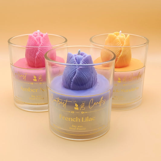 All of our candles are hand poured from soy wax and accented with non-toxic dyes and essential oils. With more on the way, there is no doubt you will find the perfect one.